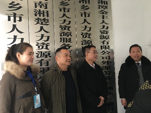 2017年12月12日我公司與湘鄉(xiāng)市人力資源服務(wù)有限公司建立了合作機(jī)制并設(shè)立外派勞務(wù)工作網(wǎng)點(diǎn),湘潭市商務(wù)局對(duì)外勞務(wù)合作中心負(fù)責(zé)人何波,湘鄉(xiāng)市商務(wù)局對(duì)外勞務(wù)合作中心招聘部諶主任,湘鄉(xiāng)市人力資源服務(wù)有限公司羅總,我公司卜總及相關(guān)人員出席揭牌儀式。