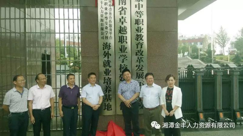 2018年9月12日,湖南省對外勞務(wù)合作服務(wù)平臺、湘潭金豐人力資源有限公司、隆回縣職中合作簽約、揭牌儀式隆重舉行。