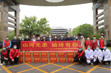 團(tuán)第四組代表到湖南工程學(xué)院,向該校捐贈了5萬只一次性醫(yī)用口罩,為抗擊疫情貢獻(xiàn)人民代表的力量。