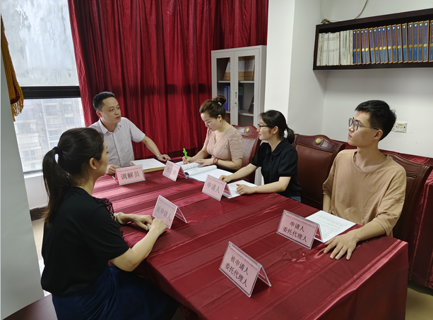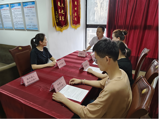 2022年7月7日,勞動爭議調解委員會組織員工和企業(yè)代表正在做調解工作,維護勞動者合法權益,建立和諧勞資關系。